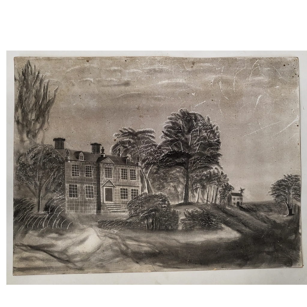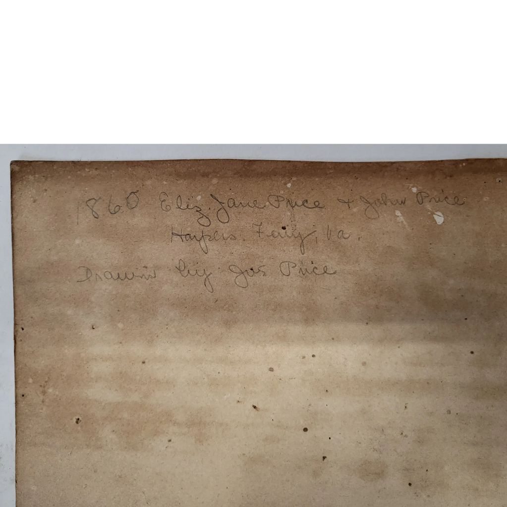 This is a charcoal drawing with added silver dust was found as a backer board for a hand decorated Victorian print.