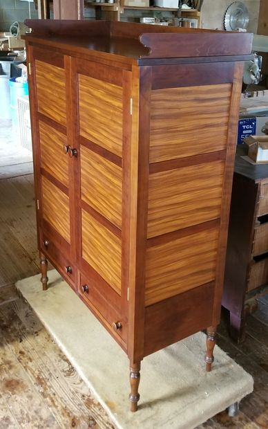 Open or shut, this is a piece to last multiple lifetimes. An heirloom to hand down through generations. Cherry from "Helmley" one of the earliest homes in the upper Shenandoah Valley. Local poplar secondary wood for shelves, and drawer sides, backs, and bottoms. Along with the paneled back.